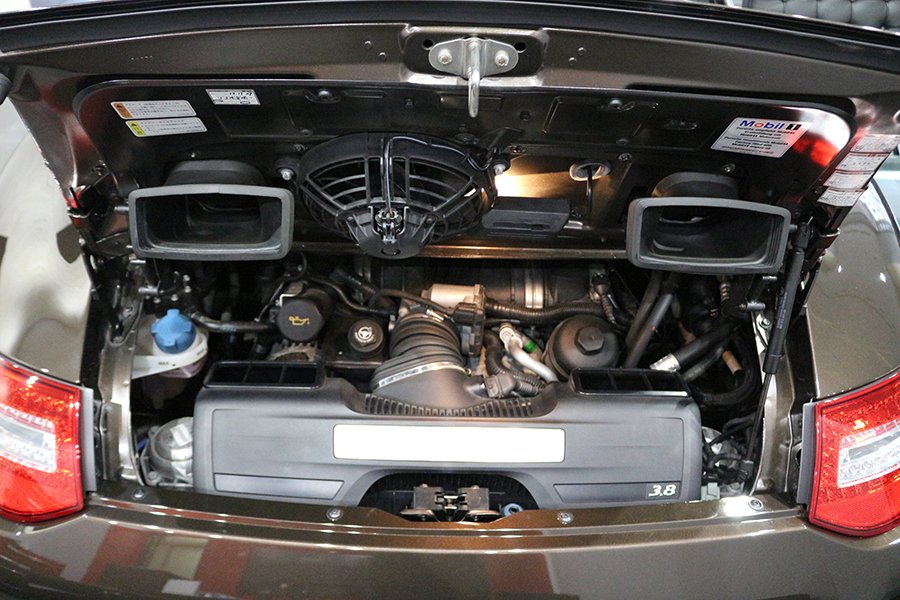 2009yモデルの997は、エンジンとミッションに大きな変更がありました。ダイレクト・フューエル・インジェクション(DFI)、いわゆる直噴システムを採用しました。エンジン効率を向上させる直噴システムは、燃費向上のソリューションとして注目される技術でポルシェも「カイエン」のマイナーチェンジ時に、V6とV8エンジンにDFIを採り入れました。「911シリーズの水平対向エンジンへの直噴システムの採用はこれが初のケースとなります。この改良により、「カレラS」は、30psアップの385psへと大幅にパワーアップしました。0-100km/h加速は4.3秒と、従来より0.2秒の短縮に成功している。燃費については100kmあたり9.8リットル(10.2km/リッター)と優れた数値を実現。高出力化と低燃費化を両立させました。